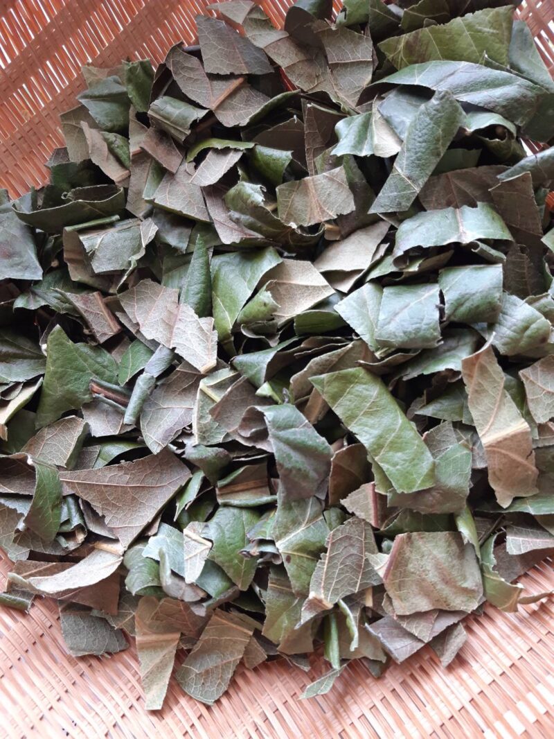 乾いたら、ハサミなどで刻む。これにより、葉の成分がエキスに抽出しやすくなります。