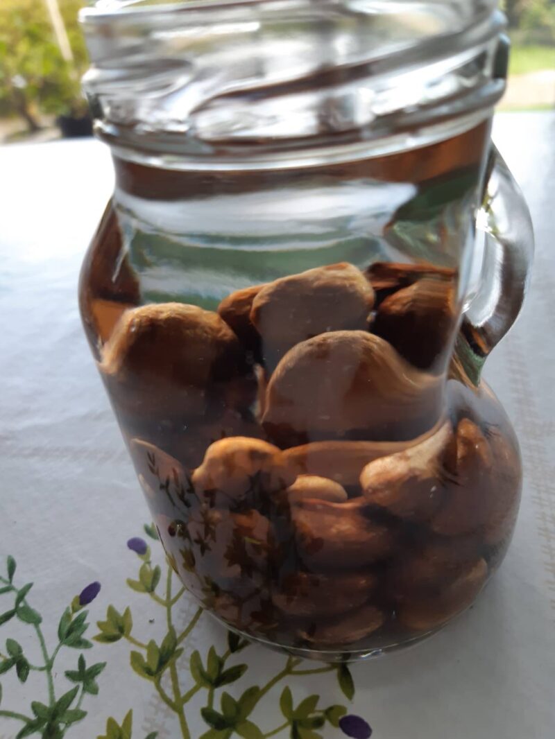 種を容器に入れてホワイトリカーを注ぐ